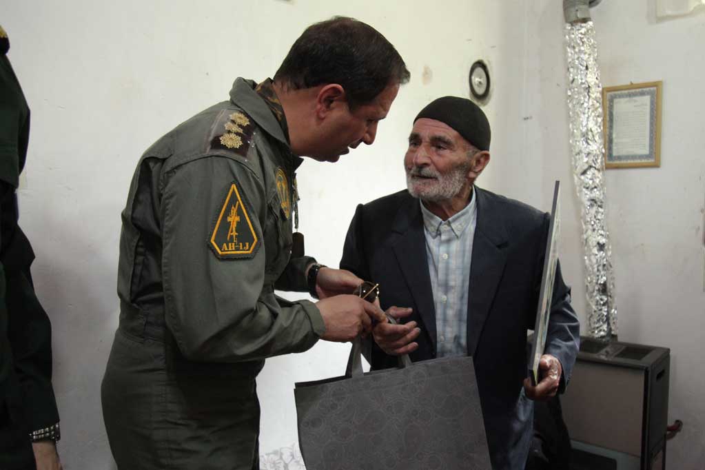 ادای احترام خلبان رحمانی به پدر شهید ابراهیم عبدی در ماسال