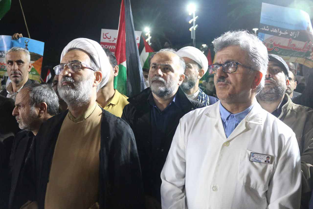 جمع کثیری از مسئولان دانشگاه علوم پزشکی گیلان ، کادر درمان و مدافعان سلامت استان به اعتراض بمباران ددمنشانه رژیم صهیونستی به بیمارستانی در غزه در میدان شهدای ذهات رشت تجمع کردند و جنایات رژیم صهیونیستی در غزه و به ویژه بمباران بیمارستان المعمدانی را محکوم کردند.